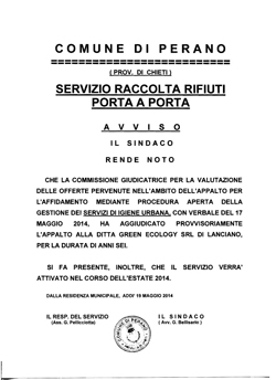 Il Comune di Perano, in collaborazione con l’Ente Capofila Unione Montana dei Comuni del Sangro dell’Ambito Territoriale Sociale n.21 “Sangro”,