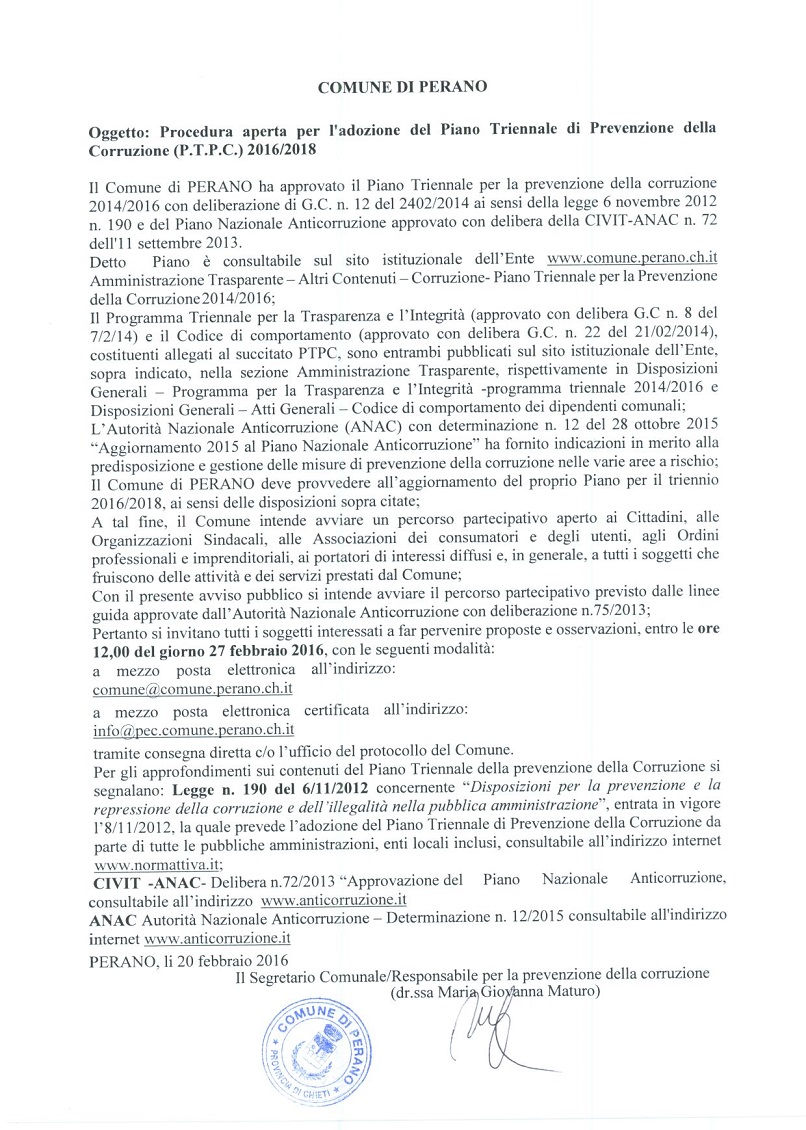 Sito Ufficiale del Comune di PERANO