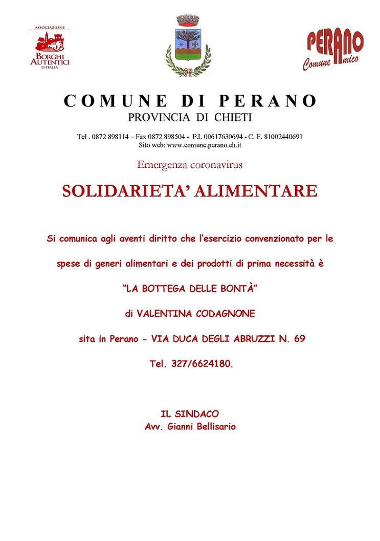 Il Comune, insieme ai volontari dell'Associazione di Protezione Civile, è a disposizione per le esigenze di persone anziane o con disabilità, prive di una rete familiare in grado di fornire supporto.